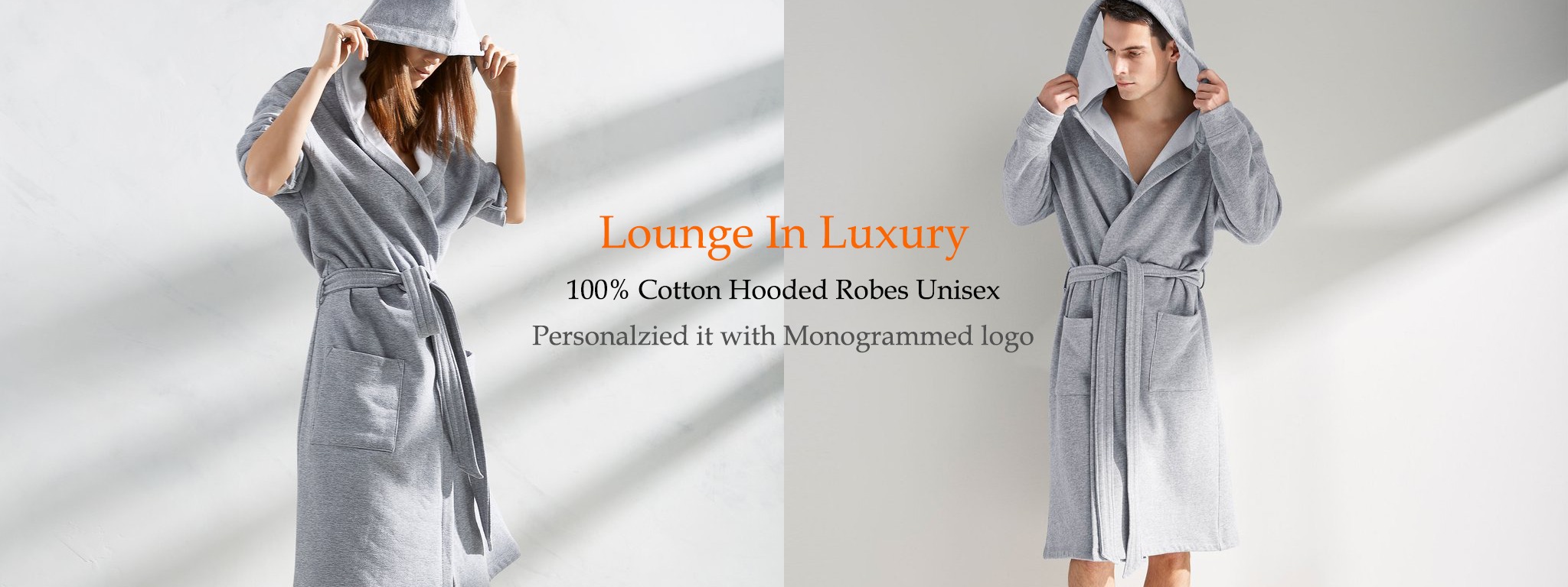 Women's Luxury Cotton Sweatshirt Jersey Knit Robe Hooded
