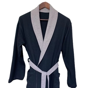 سوبر لينة الهراء كيمونو رداء حمام شعار شخصي أسود اللون القطن الهراء الجلباب الرجال